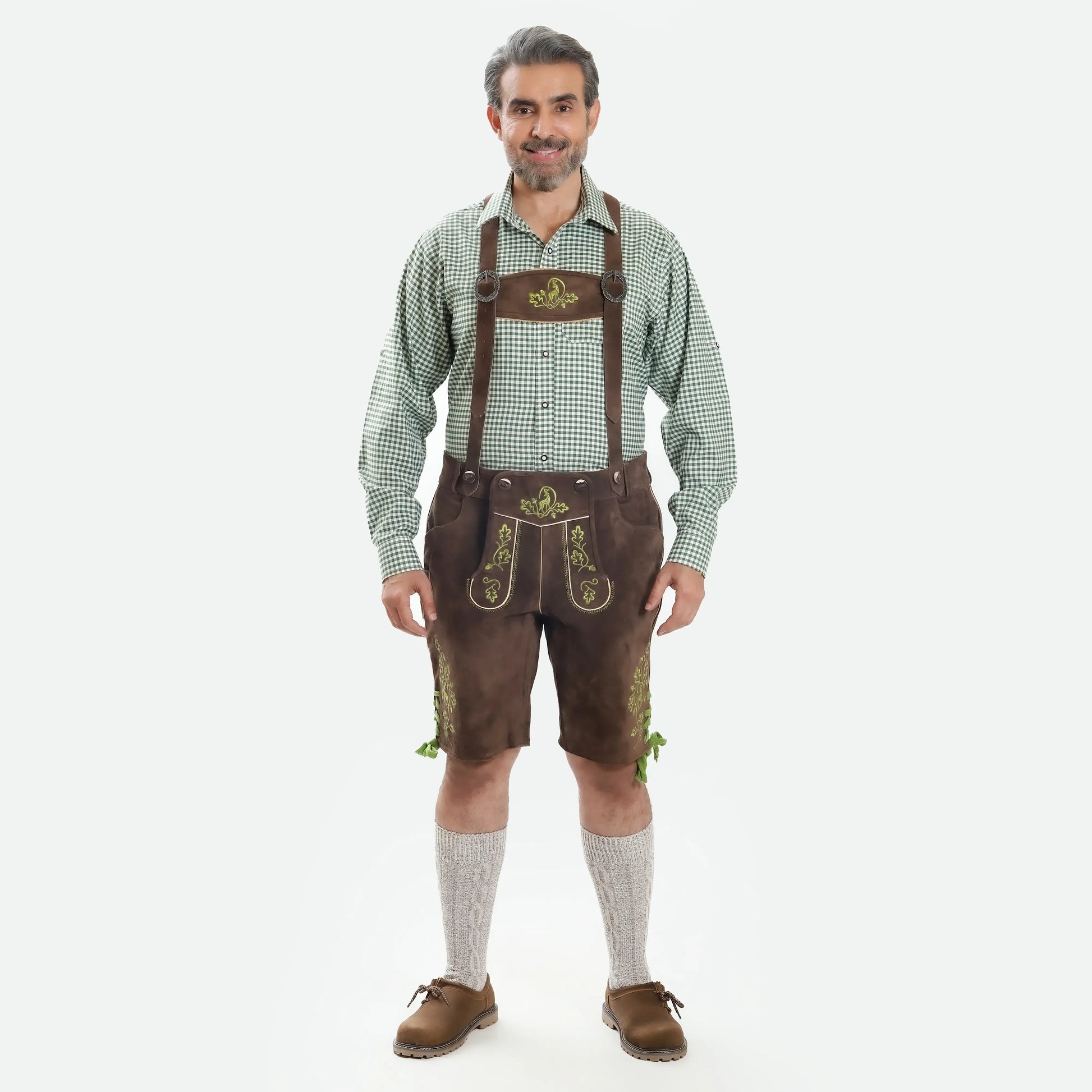 Experience the rich authentic Bavarian culture with our premium quality lederhosen, which is crafted with the utmost care and attention to detail. Made from the finest quality leather, our lederhosen men features intricate embroidery, inverted stitching, and camel bone buttons that showcase traditional craftsmanship at its best. Designed for maximum comfort and durability, our lederhosen is the perfect addition to any traditional outfit. Get your hands on the trachten outfit and best lederhosen for men!
