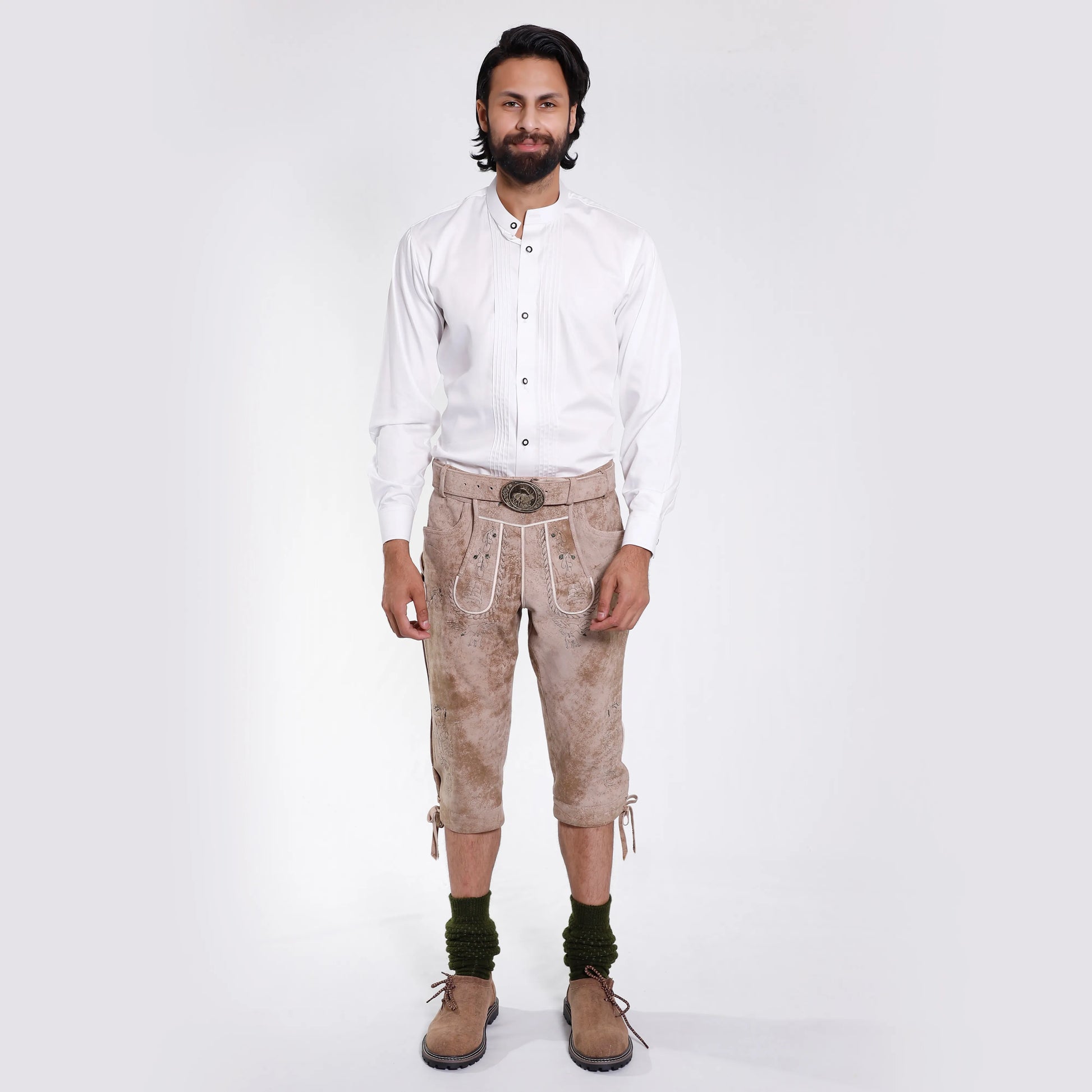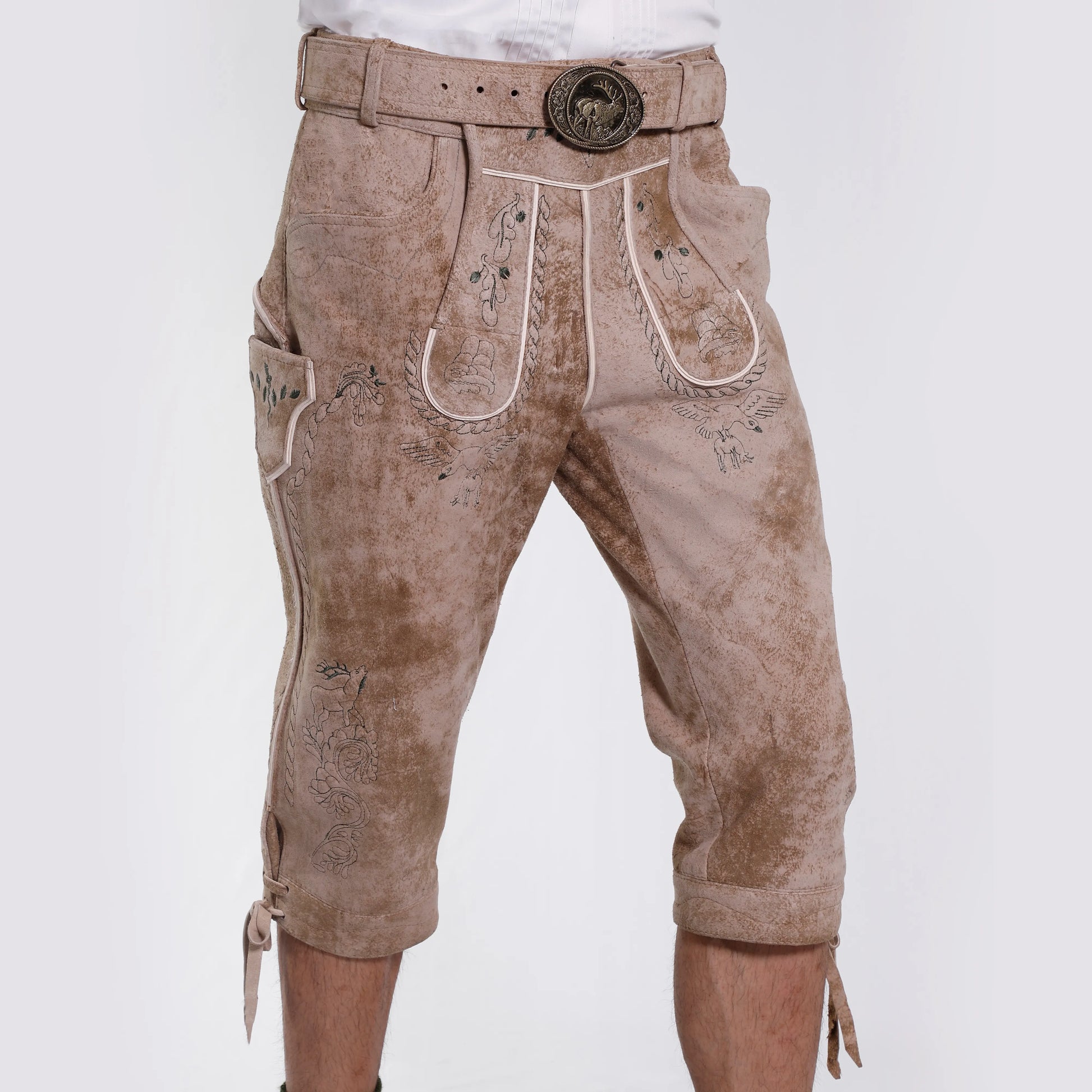 Classic Bone White Authentic Lederhosen Knee Length
