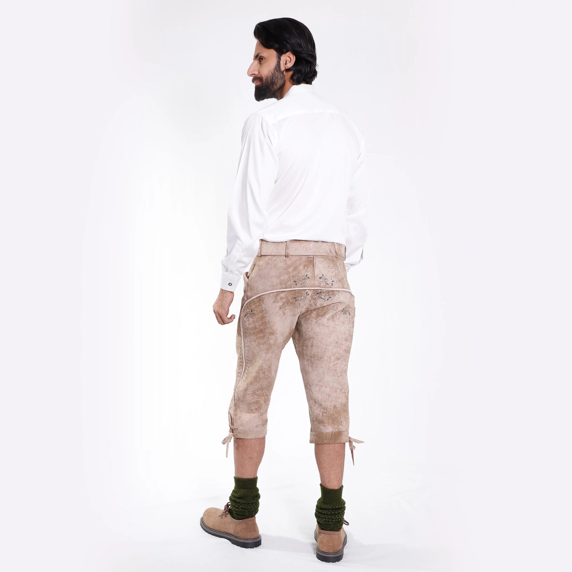 Crafted with intricate embroidery and unique designs, Bundhosen have become a fashion statement that can be worn for both casual and formal occasions. The decorative stitching patterns depict traditional Bavarian motifs such as edelweiss, hunting scenes, and coat of arms. This embroidery is done by skilled artisans who have mastered the craft of intricate and delicate stitching.