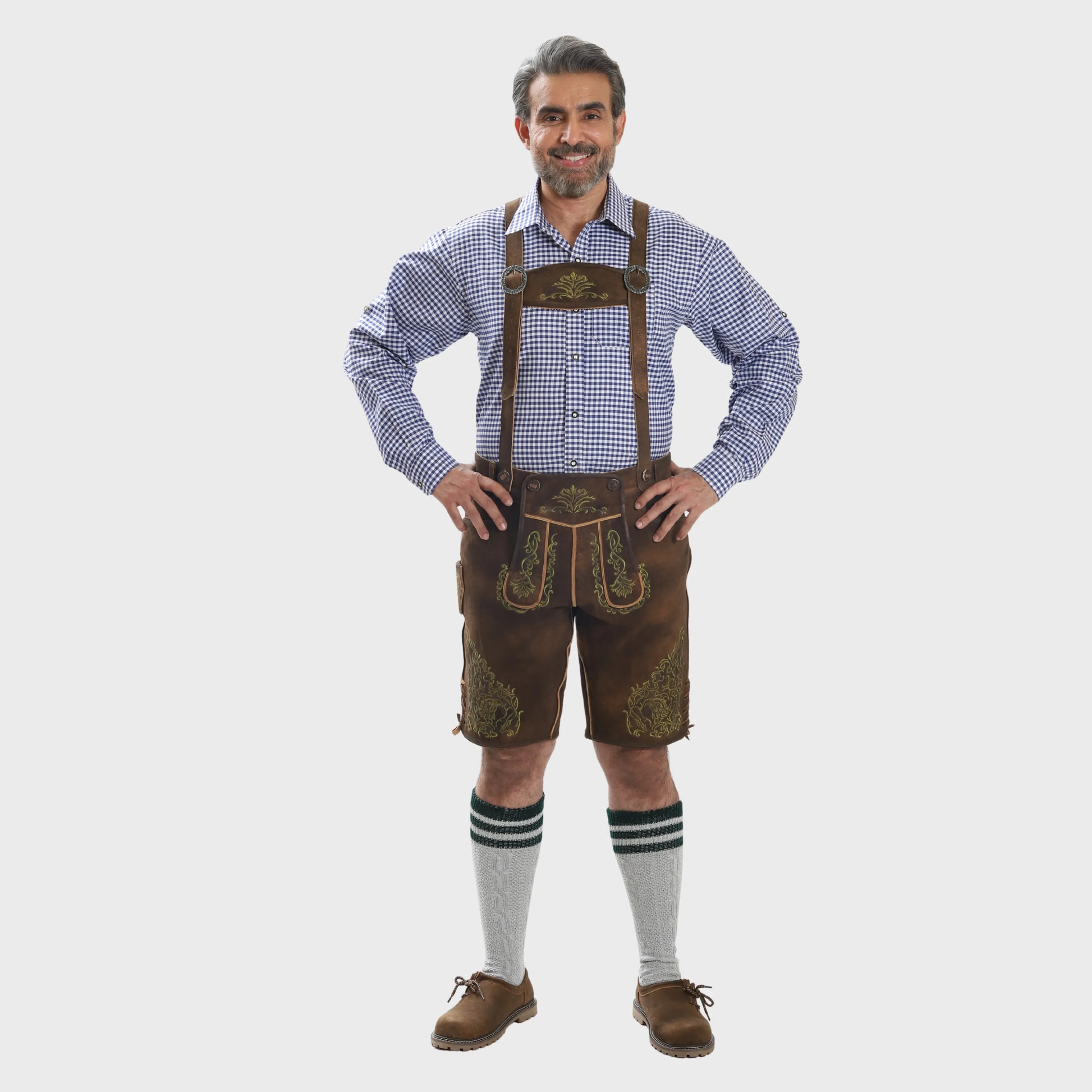The classic brown color of our lederhosen suspenders exudes an air of sophistication and timelessness. They effortlessly complement any lederhosen color, whether it's a rich earthy tone or a vibrant hue. The sleek design with minimalistic detailing adds an element of refinement, ensuring that you stand out among the crowd as a true connoisseur of traditional German fashion.