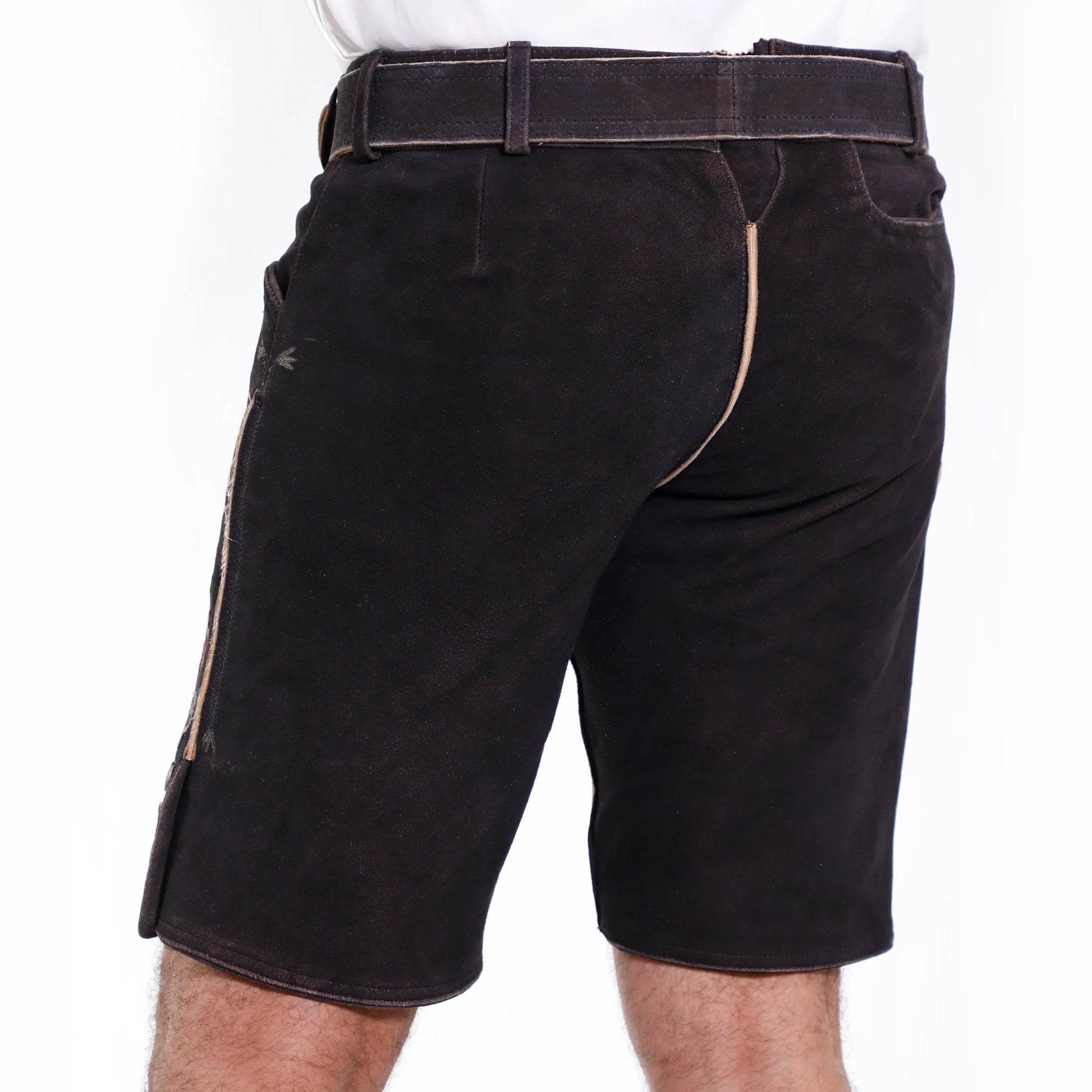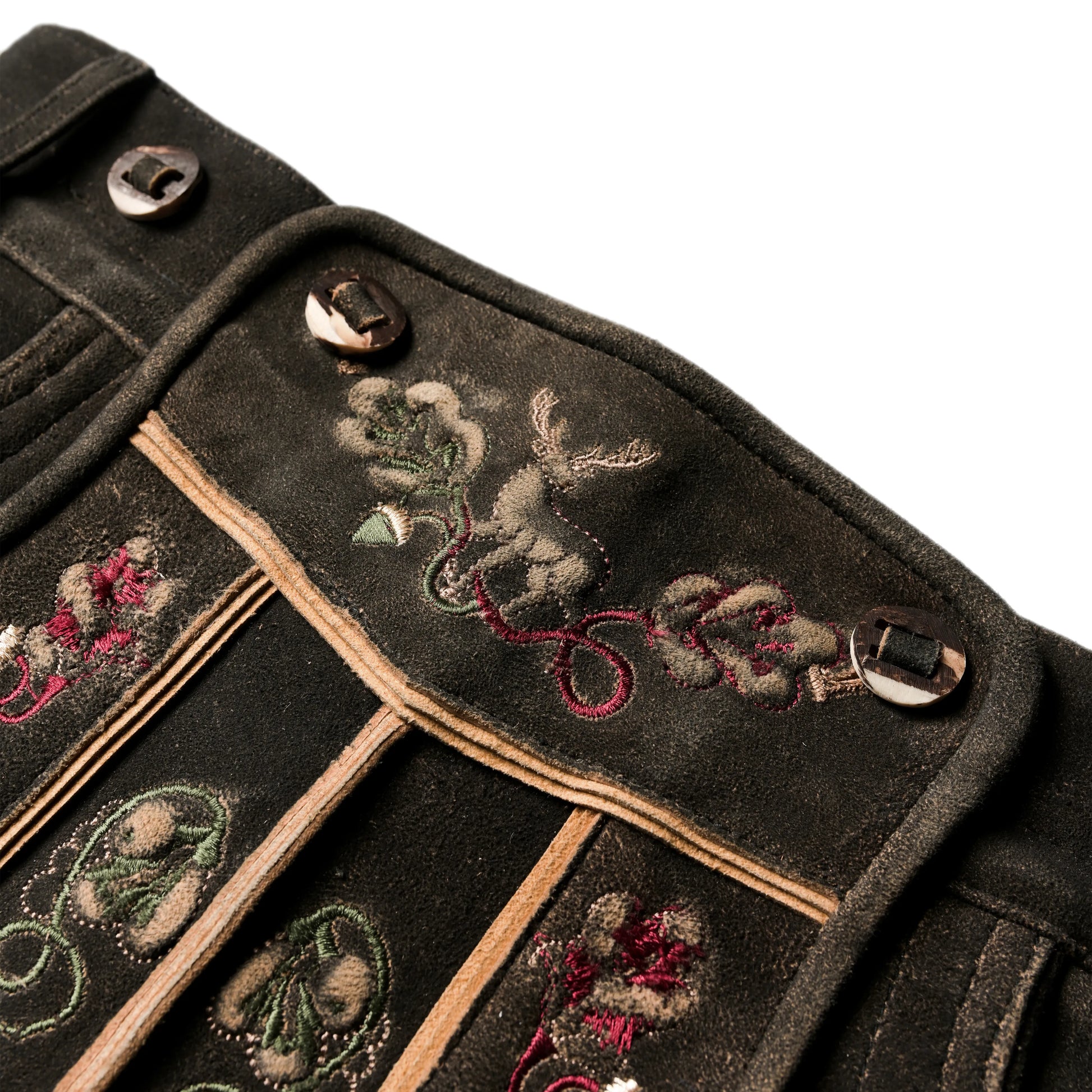 Faded Black Bavarian Lederhosen Men with Charming Embroidery