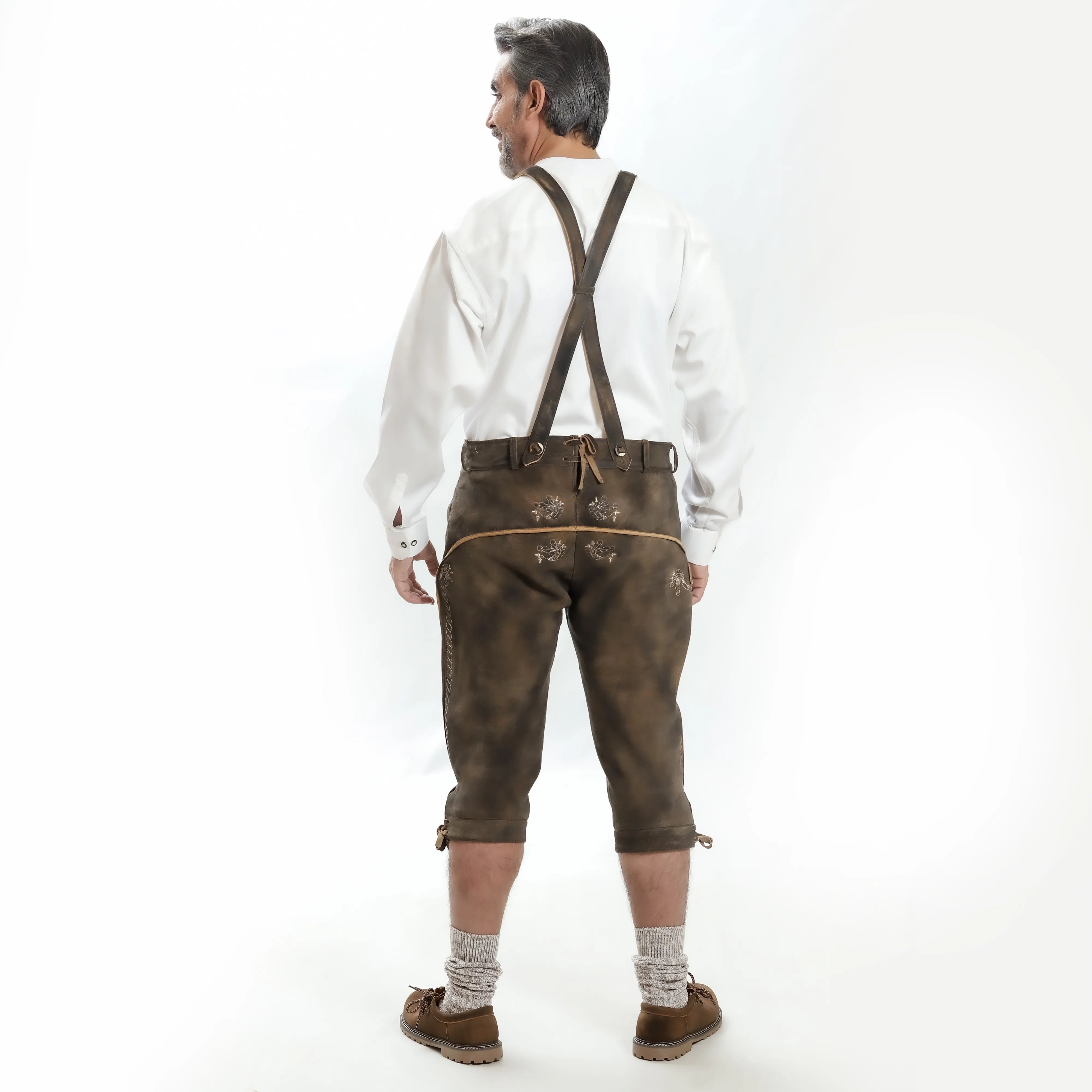 Crafted with intricate embroidery and unique designs, Bundhosen have become a fashion statement that can be worn for both casual and formal occasions. The decorative stitching patterns depict traditional Bavarian motifs such as edelweiss, hunting scenes, and coat of arms. This embroidery is done by skilled artisans who have mastered the craft of intricate and delicate stitching.