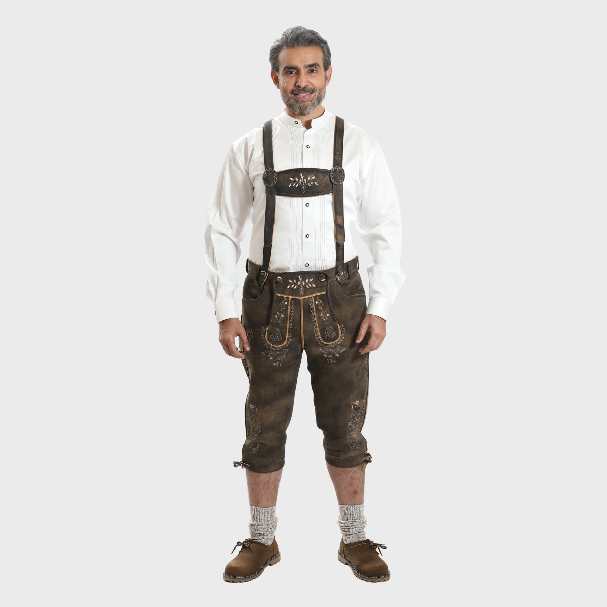 The classic brown color of our lederhosen suspenders exudes an air of sophistication and timelessness. They effortlessly complement any lederhosen color, whether it's a rich earthy tone or a vibrant hue. The sleek design with minimalistic detailing adds an element of refinement, ensuring that you stand out among the crowd as a true connoisseur of traditional German fashion.