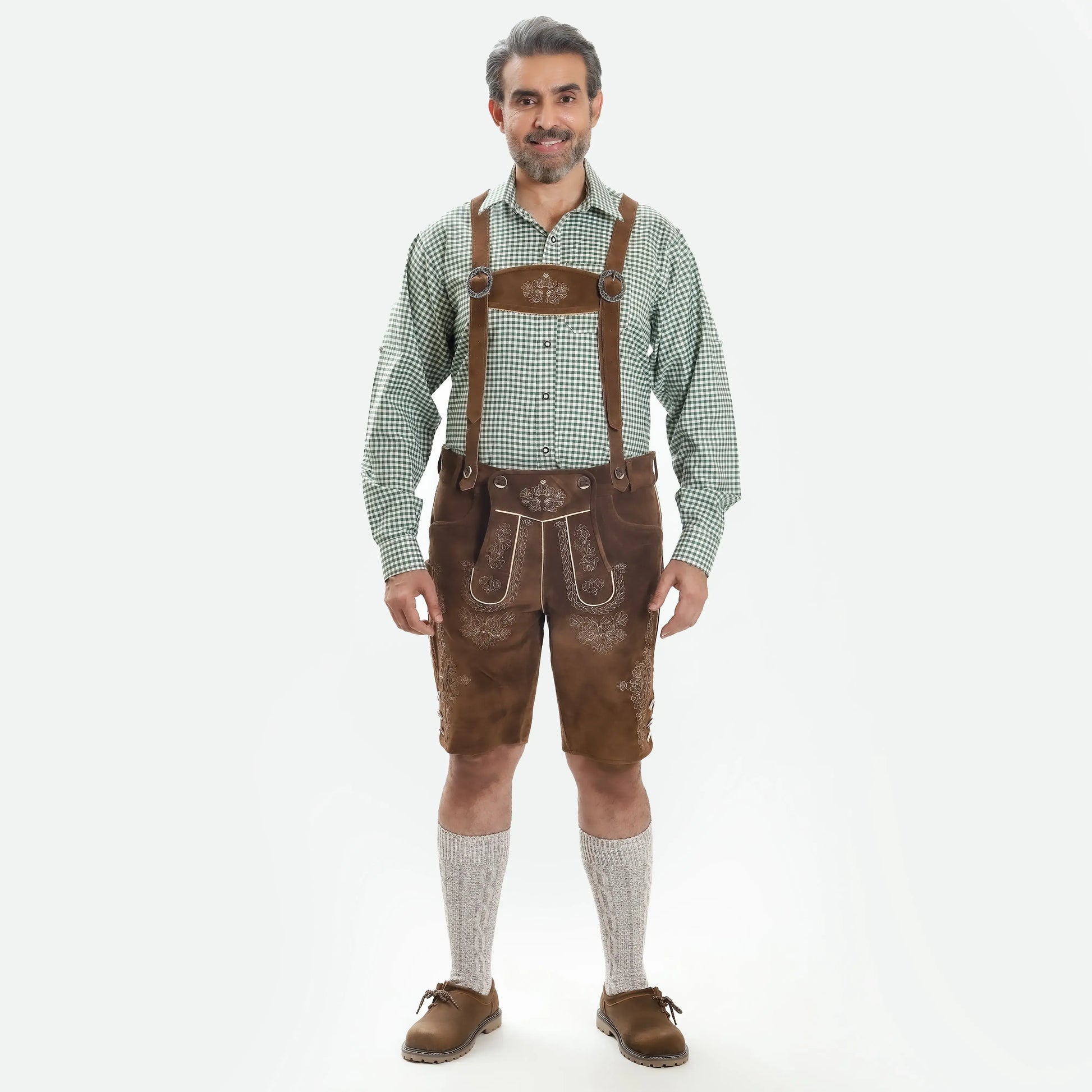 Experience the rich authentic Bavarian culture with our premium quality lederhosen, which is crafted with the utmost care and attention to detail. Made from the finest quality leather, our lederhosen men features intricate embroidery, inverted stitching, and camel bone buttons that showcase traditional craftsmanship at its best. Designed for maximum comfort and durability, our lederhosen is the perfect addition to any traditional outfit. Get your hands on the trachten outfit and best lederhosen for men!