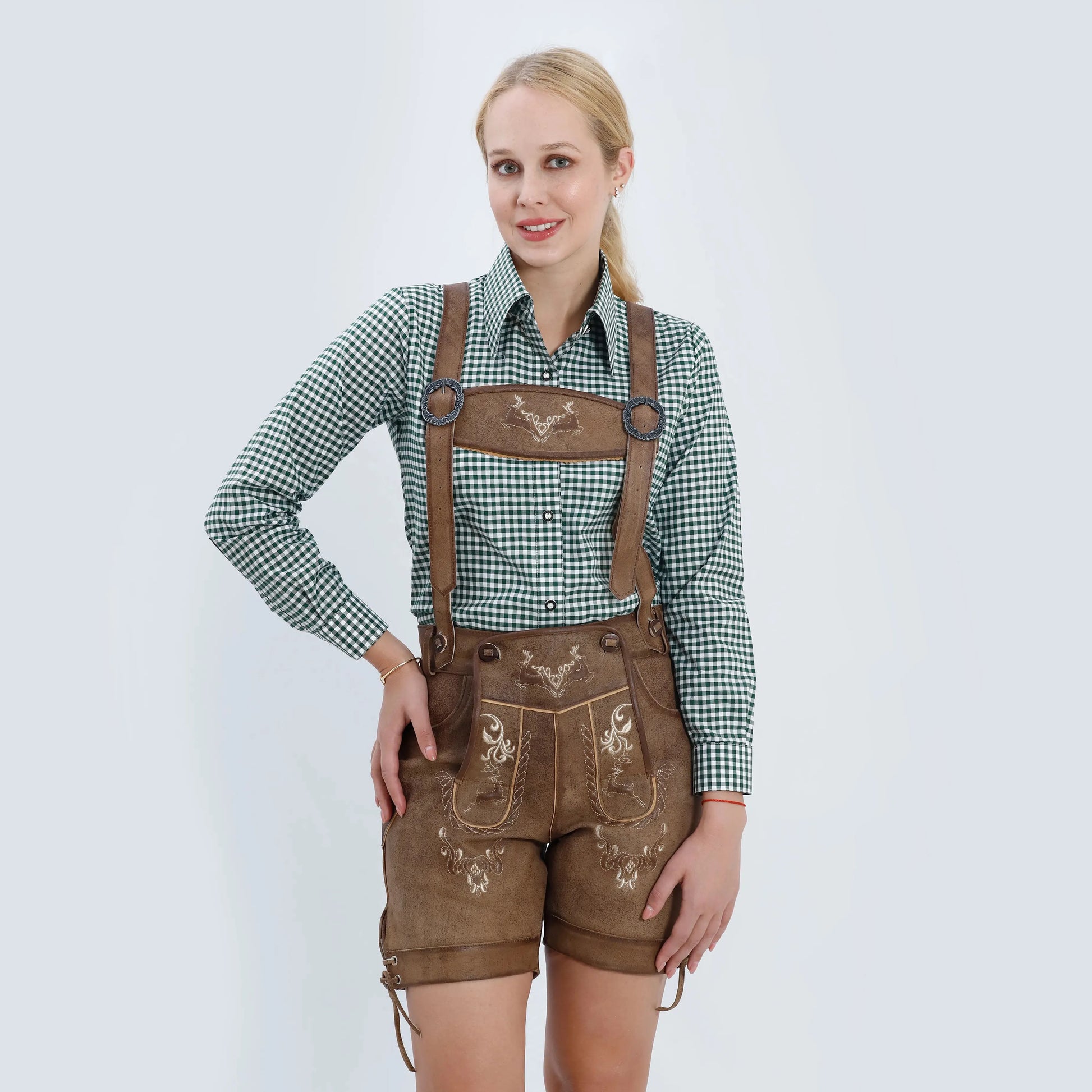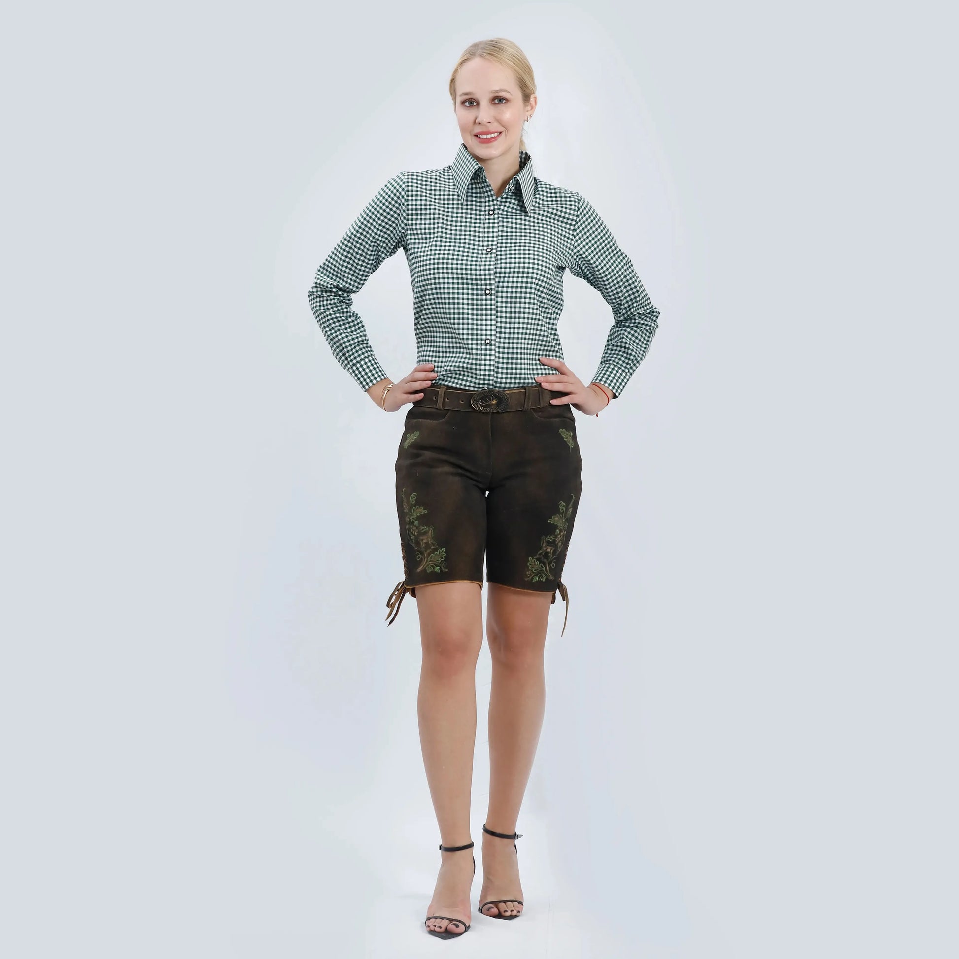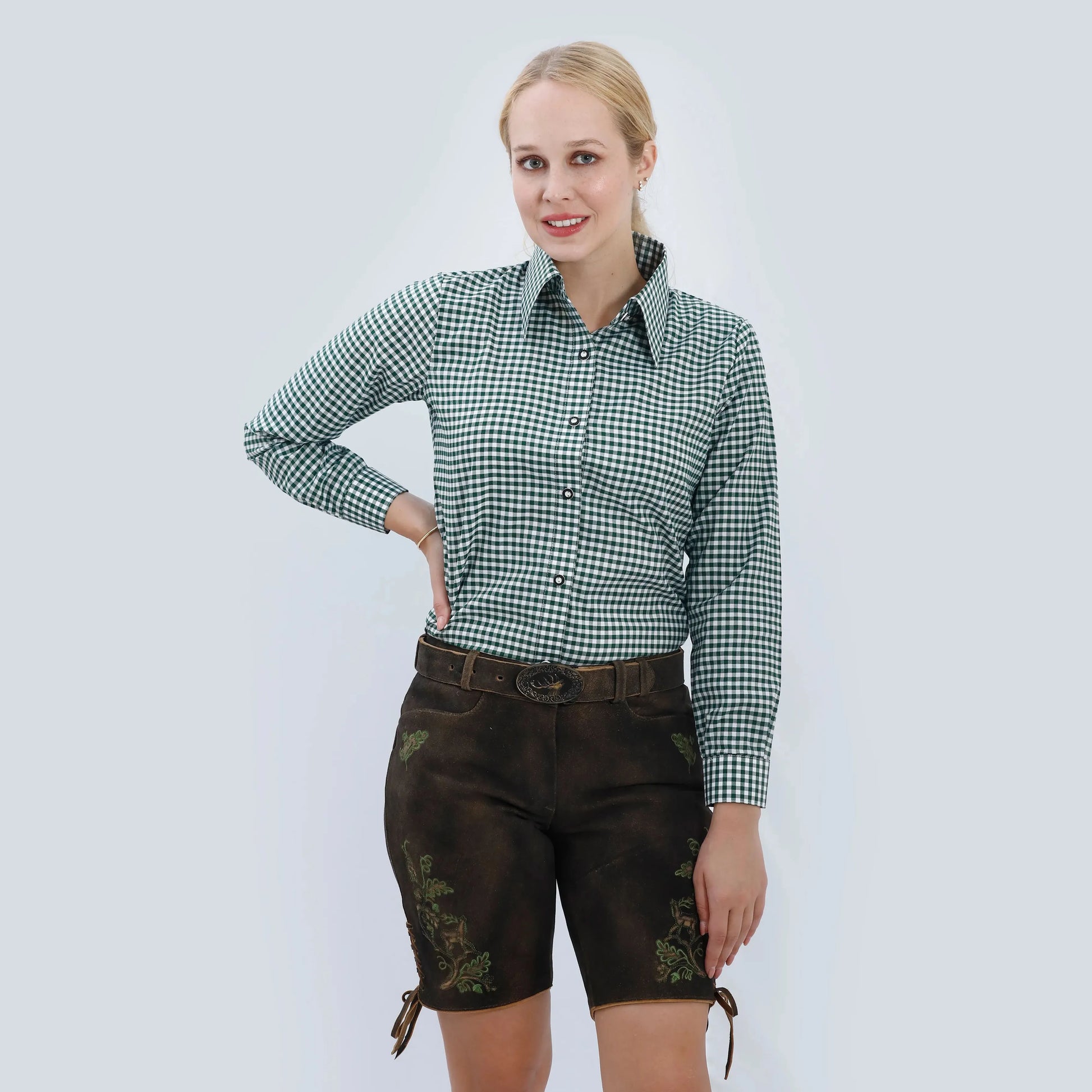 Crafted from soft and durable materials, our Women's Lederhosen Shirt is designed to withstand the rigors of frequent wear and washing. You can be sure that this shirt will retain its shape, color, and quality, making it a great investment for any Bavarian-style lover.