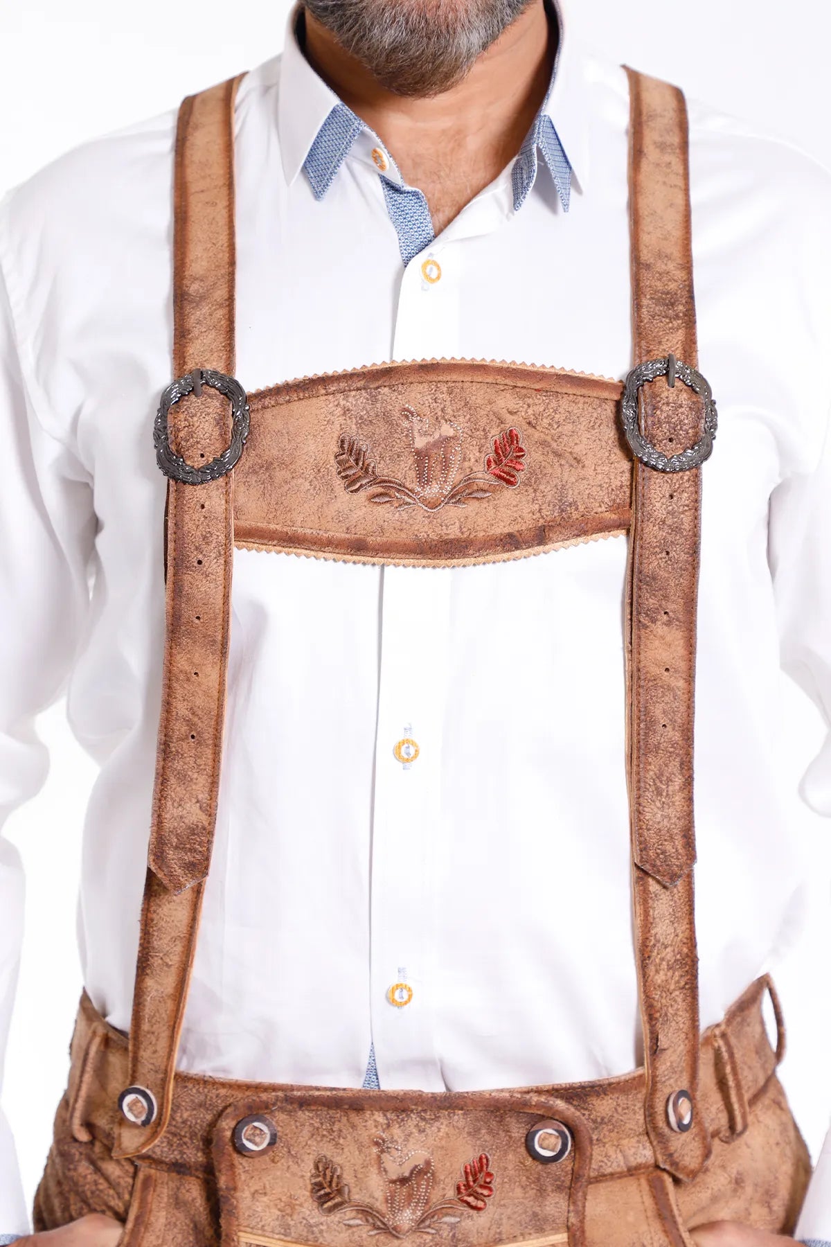 Our Handcrafted lederhosen suspenders are not only a stylish accessory but also a practical addition to your lederhosen ensemble. With their reliable support, they keep your lederhosen securely in place, eliminating the need to constantly readjust. Whether you're engaged in spirited dancing, participating in traditional games, or simply enjoying the festivities, these suspenders provide you with the freedom to move with confidence.